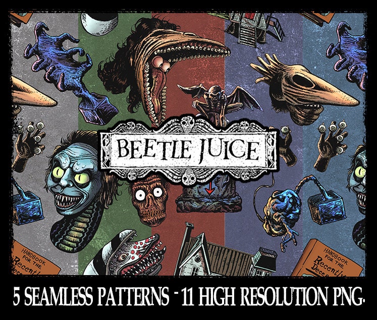 Beetlejuice Pattern Fabric Halloween Tim Burton Png Traditional Art Print Etsy